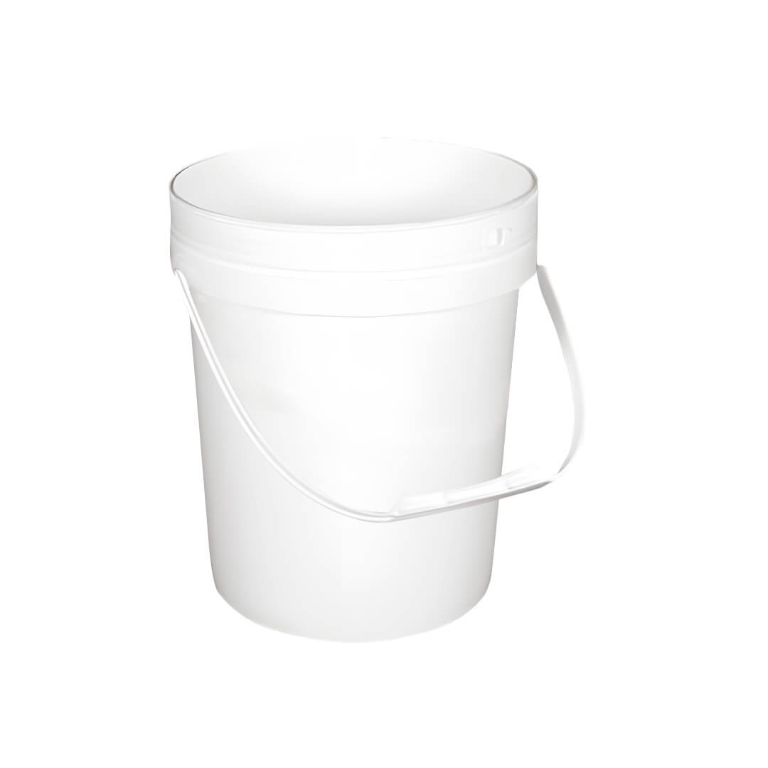 Descripción: Cubeta de plástico fabricada en polietileno de alta densidad virgen (HDPE). Medida superior exterior: 31.25 cm. Altura: 36.15 cm. Peso: .718 kgs. Capacidad interior: 19 l. Cubetas grado alimenticio, ideales para almacenar y guardar materiales sólidos y líquidos. Con tapa de sello inviolable y asa plástica. Color: blanco.