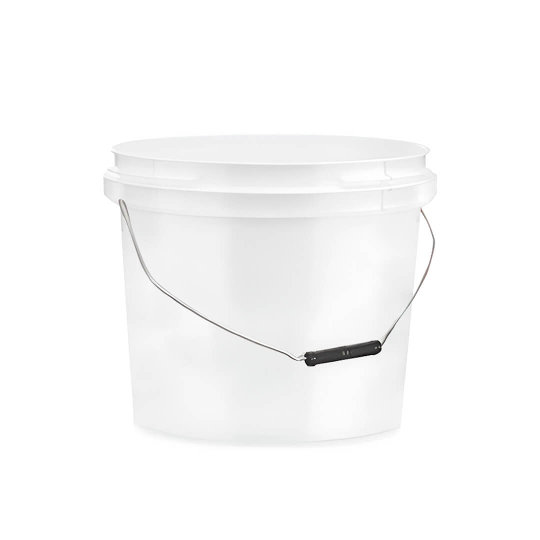Descripción: Cubeta de plástico fabricada en polietileno de alta densidad virgen (HDPE). Medidas exteriores: 32.93 x 33.58 cm. Capacidad interior: 20 l. Cubetas grado alimenticio, ideales para almacenar y guardar materiales sólidos y líquidos. Fabricadas en polipropileno (PP) y polietileno de alta densidad (PEAD). Con tapa de sello inviolable. Sin tapa y con asa metálica. Color: blanco.