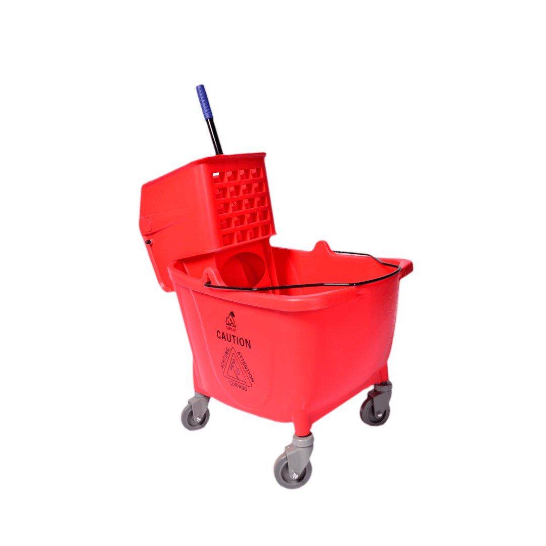 Descripción: Cubeta Con Prensa 32 Lts. Material: Polipropileno. Medidas: 63.5 X 52 X 35.5 Cm. Color: Rojo.