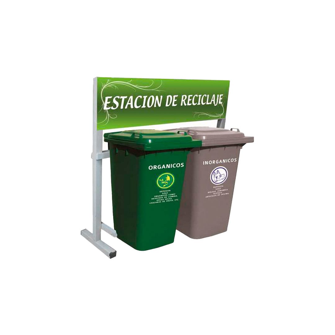 Descripción: Capacidad por contenedor: 240 lts. Colores del contenedor: Verde, gris, amarillo y azul. Medidas del contenedor: Largo 73.0 cm. Ancho 58.0 cm. Alto 108.0 cm. Color soporte: Gris Claro. Medidas estación: Largo: 110.0 cm. Ancho: 91.0 cm. Alto: 160.0 cm. Capacidad total de reciclaje 480 lts. Espacio publicitario con una cara al frente. Costo de personalización de logos y leyendas en vinil impresión Digital y vinil en contenedores de acuerdo a proyecto no incluido.