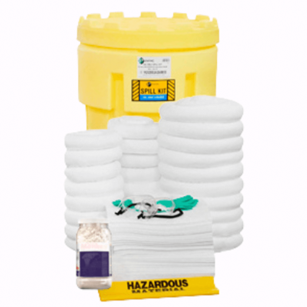Descripción: Este kit de 95 galones incluye tambor de salvamento; certificado, manejable y ligero. Los absorbentes de solo aceite están diseñados para usarse cerca de fuentes de agua para absorber el aceite mientras repelen el agua. Aprobado por Normas: 29 CFR 1910.120, 40 CFR 112.7, 40 CFR 122.26, 49 CFR 173.3. EPA, SPCC Y NPDES. Incluye 100 toallas absorbentes, 10 calcetines absorbentes, 5 bolsas para Residuos Peligrosos, 2 guantes de Nitrilo, 2 goggles de seguridad, 1 absorbente granular y 1 Tambor de Salvamento (Poly OverPack). Medidas: 80 x 65 x 101 cm. Peso: 38 Kg. Capacidad de absorción: 235 Lts. Capacidad del contenedor: 359 Lts.